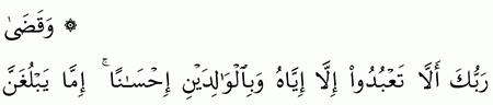 036293 وقضى ربك ألا تعبدوا إلا إياه وبالوالدين إحسانا إما يبلغن عندك الكبر أحدهما أو كلاهما فلا تقل لهما أف ولا تنهرهما وقل لهما قولا كريما سورة الإسراء آية ٢٣