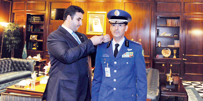 الأمير خالد بن سلمان يقلد الملحق العسكري رتبته الجديدة