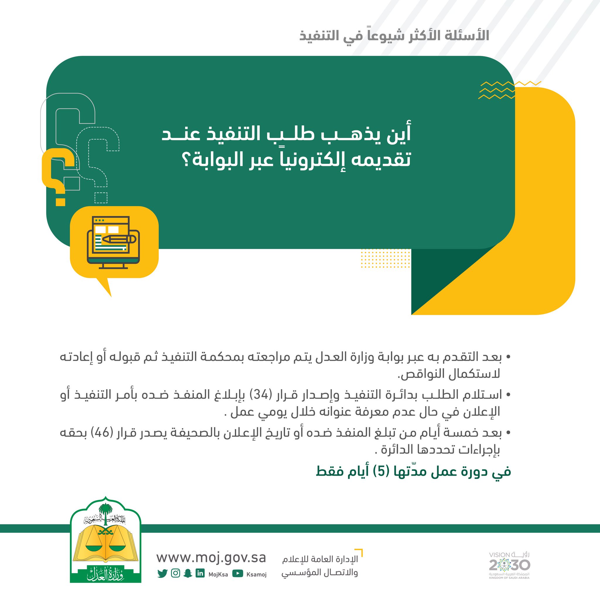 وزارة العدل Twitter પર أين يذهب طلب التنفيذ عند تقديمه إلكترونيا عبر البوابة الإلكترونية