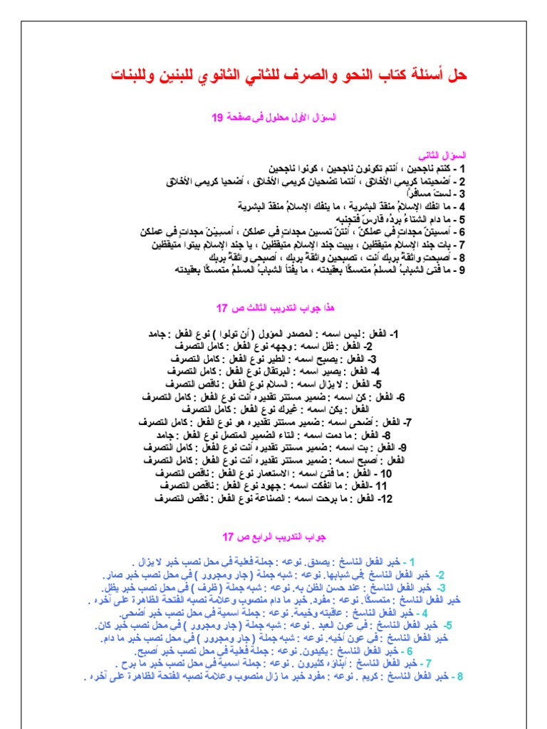 00حل أسئلة كتاب النحو والصرف للثاني الثانوي للبنين وللبنات 00