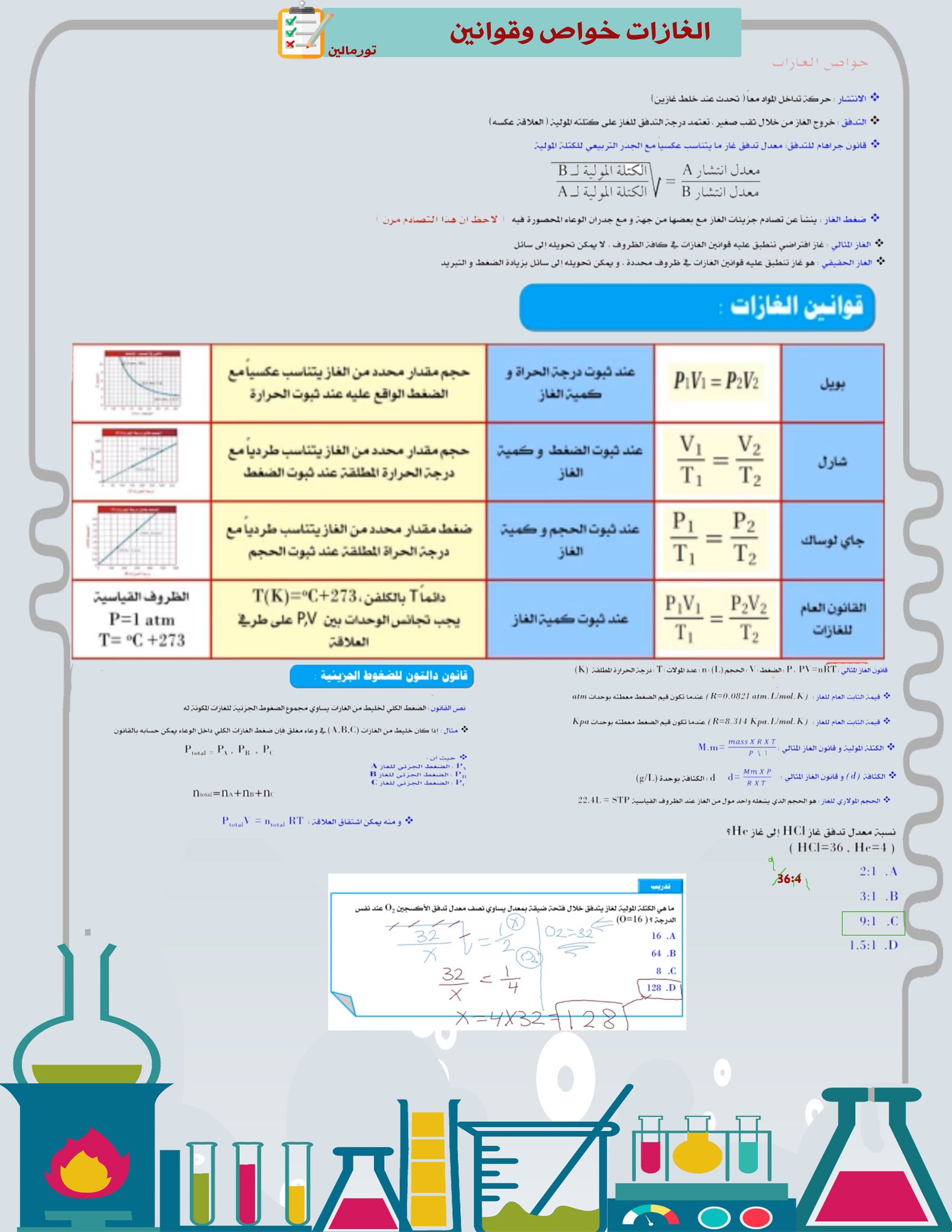 ملخص قوانين الغازات بيوتات الكيمياء التعليمية