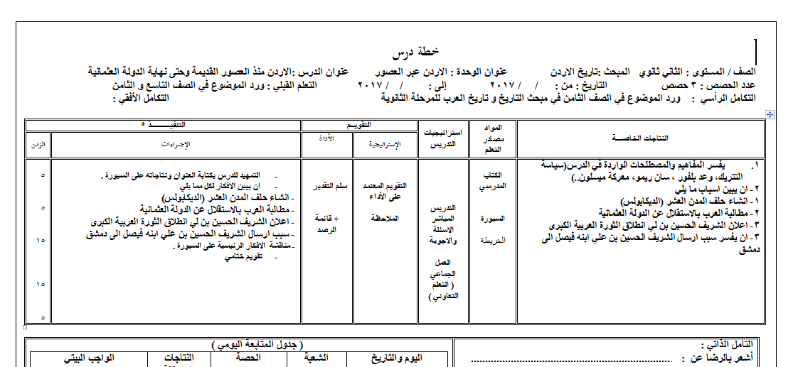 نموذج Word تحضير شامل لمادة تاريخ الاردن الصف الثاني ثانوي الفصل الاول 2018 منتديات صقر الجنوب