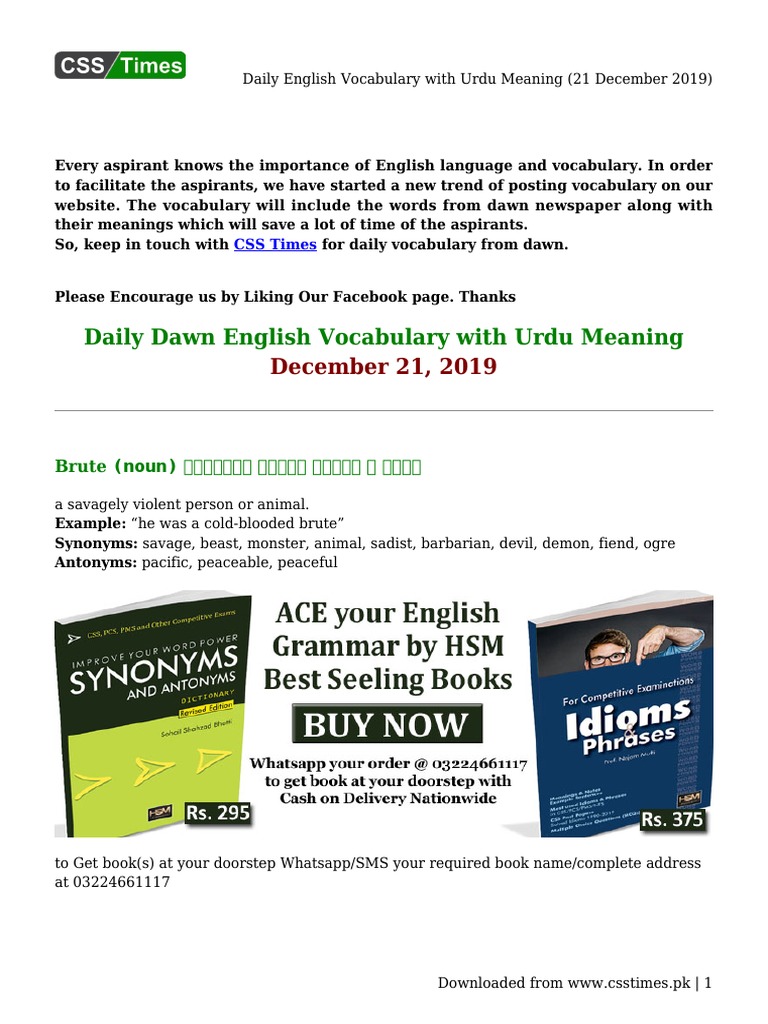 Daily Dawn Vocabulary With Urdu Meaning 25 October 2018 Vocabulary Daily Vocabulary Meant To Be